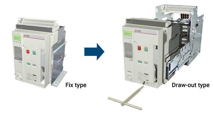 By using a draw-out type for the ACB, maintenance is possible simply by pulling out the main body.
