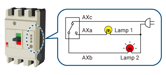 ☑️ When the circuit breaker is off or tripped: Lamp 2 lights up (AXb is closed).