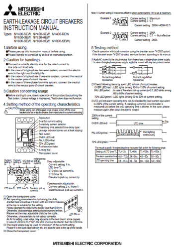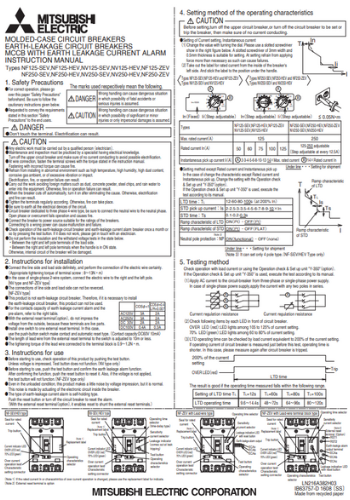 MOLDED-CASE CIRCUIT BREKERS EARTH-LEAKAGE CIRCUIT BREAKERS MCCB WITH EARTH LEAKAGE CURRENT ALARM INSTRUCTION MANUAL